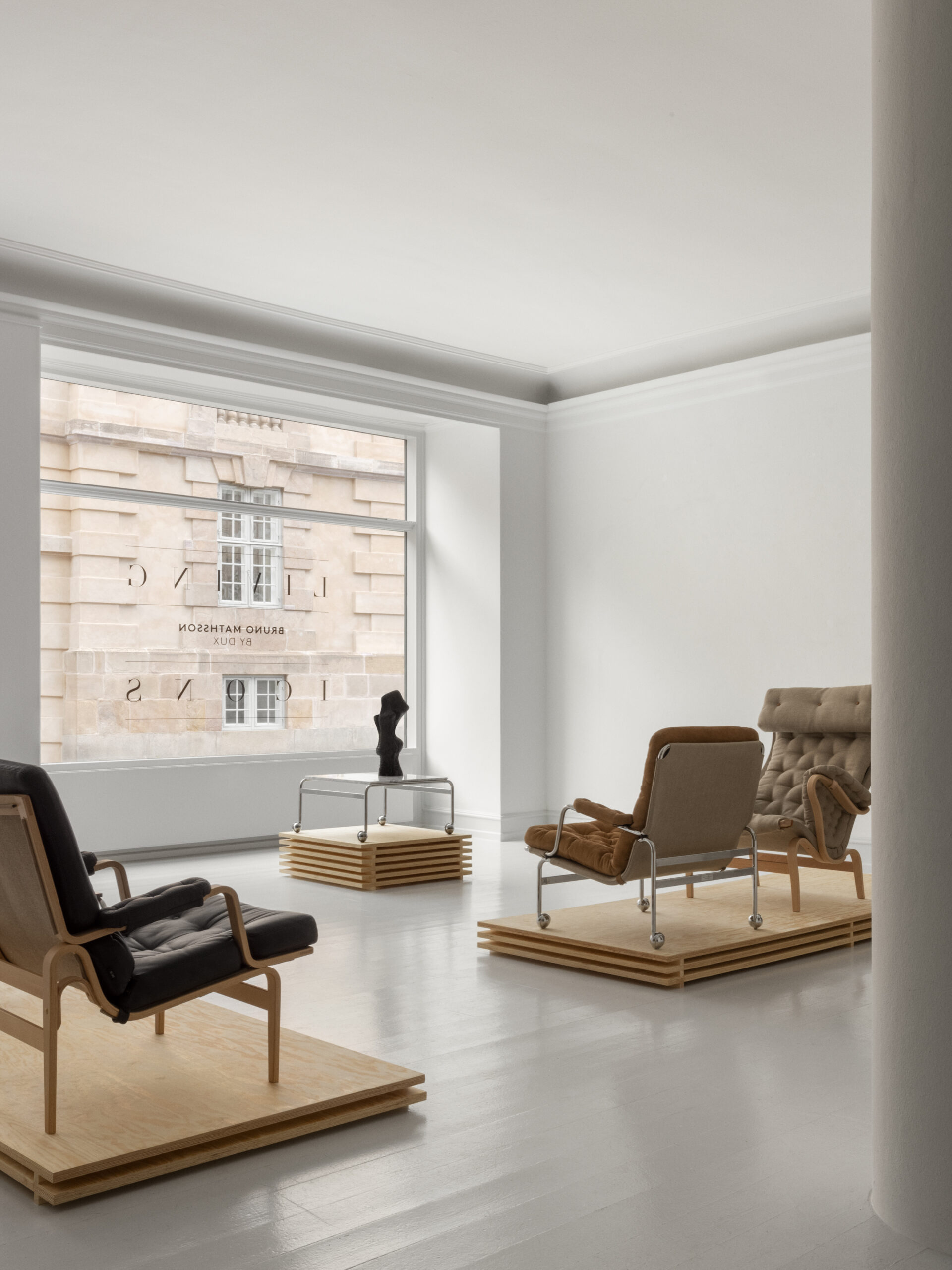 "De tentoonstelling Living Icons is een eerbetoon aan de tijdloze designklassiekers van Bruno Mathsson, die voor DUX ontworpen zijn. Living Icons is gebaseerd op een samenspel van voorwerpen van hedendaagse Scandinavische ontwerpers die qua vorm en materiaal zowel een uitdaging vormen als een afspiegeling zijn van het iconische ontwerp van Bruno Mathsson," aldus Pernille Vest, interieurstyliste en curator van de tentoonstelling.