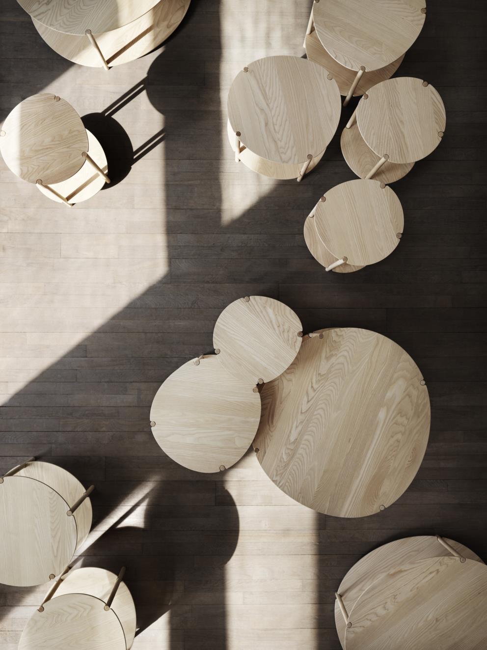 Het karakter van de Lunaria komt door het gebruik van zacht en warm hout, en de subtiele en onregelmatig afgeronde vormen van het tafelblad.