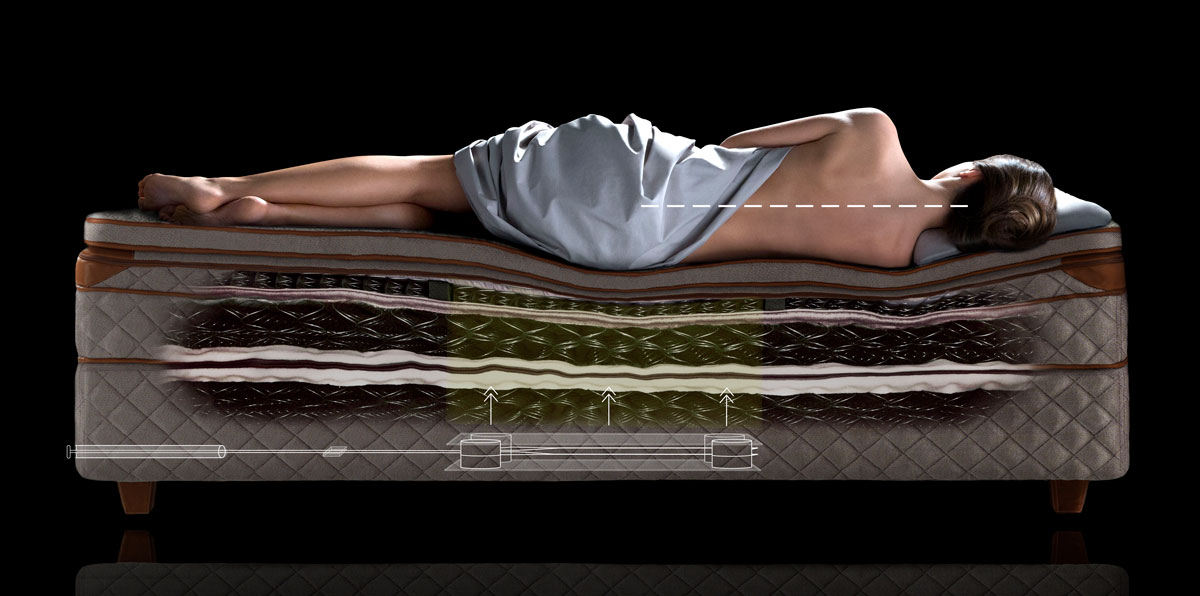 De ultieme slaapervaring. Aanpasbare comfortzones, plus extra lendensteunverstelling.
