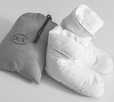 Luxueus warme DUX-donslaarzen houden je voeten overal lekker warm.