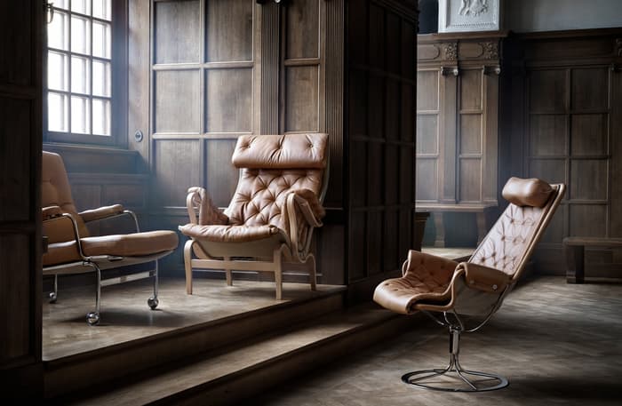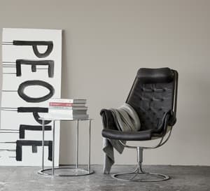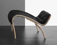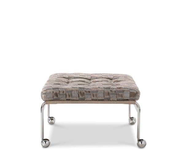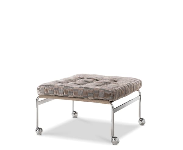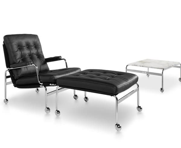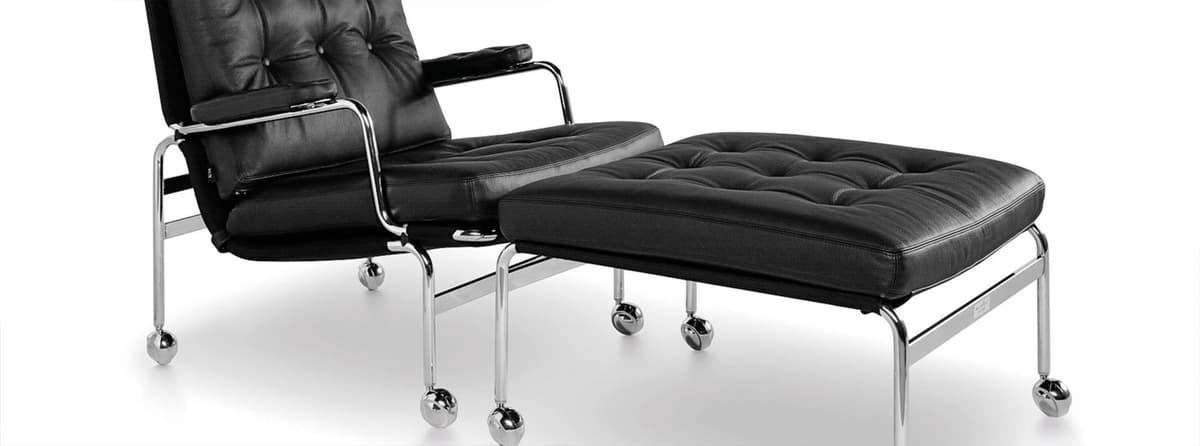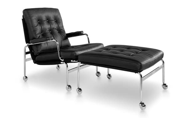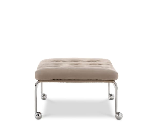 De klassieke Karin-leunstoel werd in 1969 ontworpen door Bruno Mathsson. Het werd het eerste meubelstuk dat gemaakt werd tijdens een samenwerking die tientallen jaren duurde. Deze elegante voetenbank is een essentieel onderdeel van die collectie en biedt een comfortabele aanvulling op de Karin-stoel, dankzij de gevulde kussens op een verchroomd frame met dragende, geweven stof.