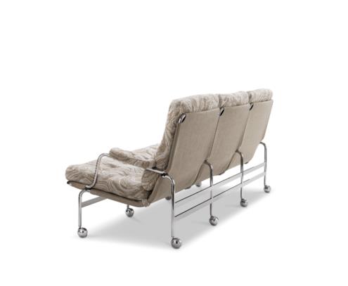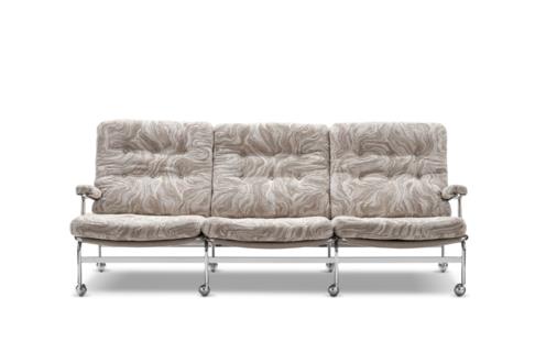 De Karin 73 is een elegante 3-zitsbank op basis van een klassiek design, met een fijn verchroomd frame en diep gestikte kussens.